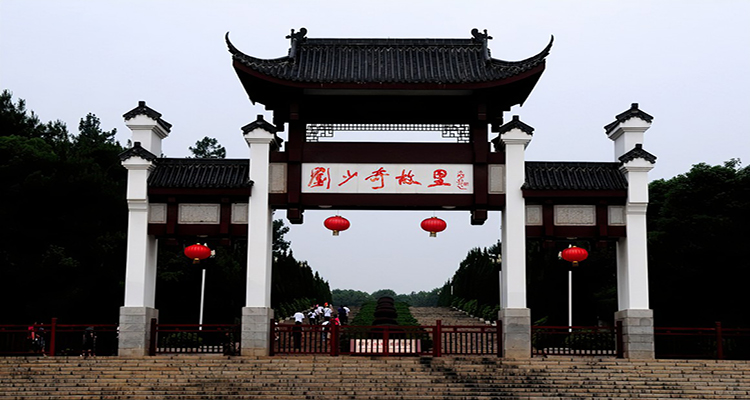 1988年11月24日,劉少奇誕辰90周年之際落成的劉少奇銅像廣場占地面積8000多平方米(包括踏步)。兩邊山頭青松傲立,綠樹掩映。廣場正前方有一個平臺,平臺中央矗立著劉少奇銅像。劉少奇銅像由中華全國總工會捐建,著名雕塑大師劉開渠及弟子程允賢精心制作。銅像加底座共高7.1米,其中像高3.0米,座高4.1米。這個數字包含著兩層含義:第一,“七一”是黨的生日,劉少奇同志一生致力于黨的建設,為黨和人民的事業(yè)付出了畢生的精力,是黨和國家的卓越領導人。第二,劉少奇同志享年71歲。銅像座西北朝東南,面部神情威嚴中帶著微笑,滿懷滄桑地眺望遠方,再現了作為黨和國家主要領導人之一的劉少奇風塵仆仆、日理萬機的光輝形象,使人油然而生一種敬意和親切感。