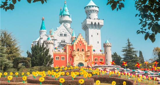 愛(ài)情谷,這里可以看到瑞士大鐘塔和歐洲小鎮(zhèn),處處都是典型的歐式建筑。右邊的丹麥國(guó)王加冕城堡,是個(gè)明星夢(mèng)工廠和恐怖城。與它相鄰的那座綠頂紅墻的建筑是荷蘭海牙國(guó)際法院,內(nèi)部是一個(gè)世界蝴蝶博覽館,在那里可以免費(fèi)欣賞到各種精美的蝴蝶標(biāo)本。左邊的湖水叫天鵝湖,取名于俄國(guó)作曲家柴可夫斯基的同名舞劇《天鵝湖》,湖邊那三座高大的風(fēng)車(chē)是荷蘭的象征。右邊地上的泉眼是旱噴泉,在旱噴泉上方的建筑是意大利圣三山教堂,它與原型比例是1:1.5,每年都有許多對(duì)新人在這里舉行西式婚禮。這里還有一個(gè)歐洲小鎮(zhèn)仿建的是德國(guó)和法國(guó)民居,比例為1:1的歐式風(fēng)格,被開(kāi)放成商場(chǎng)和服裝出租點(diǎn)。