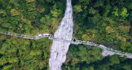 橫跨崖壁峽谷,凌駕綠樹翠竹,九龍江水幕玻璃棧道“掛在”水花飛濺的瀑布旁,融入秀美山水,宛如仙境之途。站在水幕玻璃棧道上俯瞰遠(yuǎn)望,有漫步高空的驚險(xiǎn)刺激,也有置身林間的悠然享受,帶上你默契的小伙伴,一起來感受較美水幕玻璃棧道的浪漫與唯美。